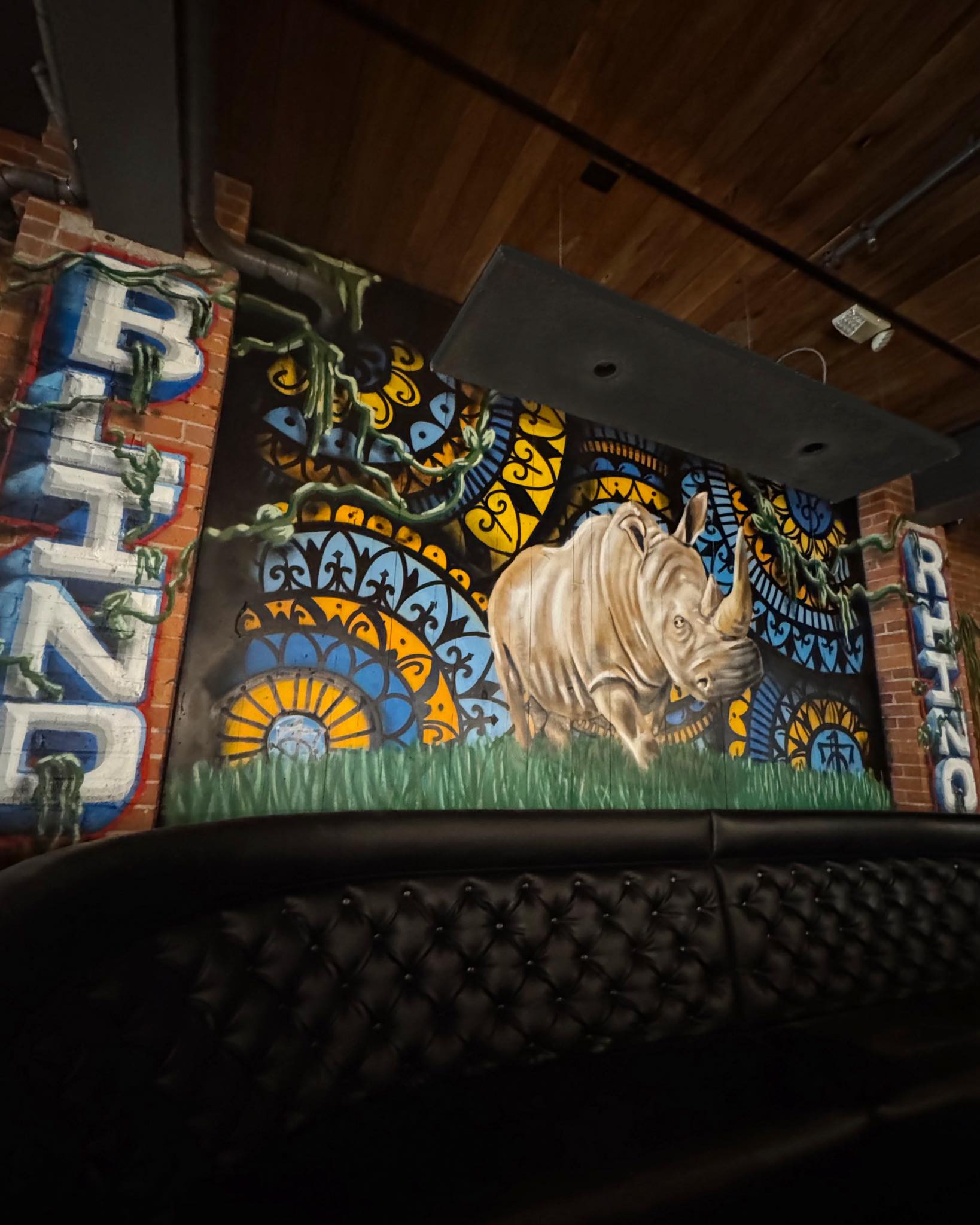 Upon entering the space, a giant rhino from a collab mural between Jackson Werpeps @werpeps + Tarka Tenax @tarka.tenax looks down over the booths from the left. @werpeps has been part of the wall art (including the bathrooms in Black Rock!) for each of their locations. There’s an area that can easily be sectioned off for private events as well as 53 TVs to make sure you can see your game from wherever you land.
